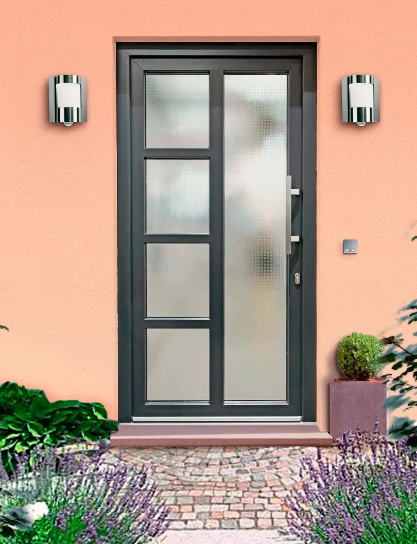 El sistema está equipado con un umbral de aluminio con rotura de puente térmico, que elimina los "puentes fríos" y previene la formación de condensación en la parte inferior de la puerta. Los contornos redondeados del perfil no solo dan a la entrada un aspecto estético, sino que también evacúan eficazmente el agua de lluvia. Es una elección práctica para quienes buscan fiabilidad alemana y protección contra el ruido exterior a un precio razonable.