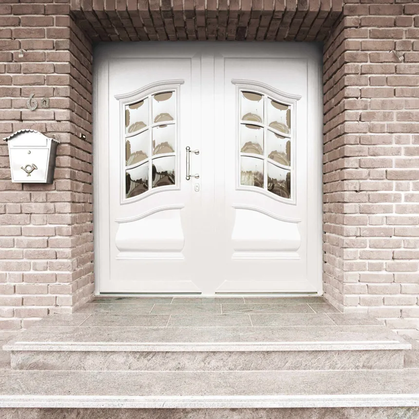 Puerta de entrada clásica y fiable de PVC de 70mm con alta estabilidad y diseño redondeado elegante. Acabado premium con superficie HDF de larga duración.