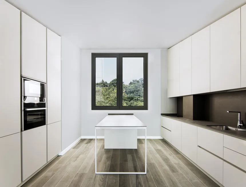 Pero detrás del diseño refinado se esconde un potente aislamiento térmico. Gracias a la mayor profundidad de montaje (70 mm) y al uso de inserciones de poliamida extra anchas (35 mm), este sistema compite en prestaciones de ahorro energético con las mejores ventanas de PVC. Obtiene la rigidez y durabilidad del metal, un aspecto elegante y un microclima confortable en casa, independientemente del tiempo que haga fuera. Es la elección de perfeccionistas para quienes cada detalle del interior es importante.