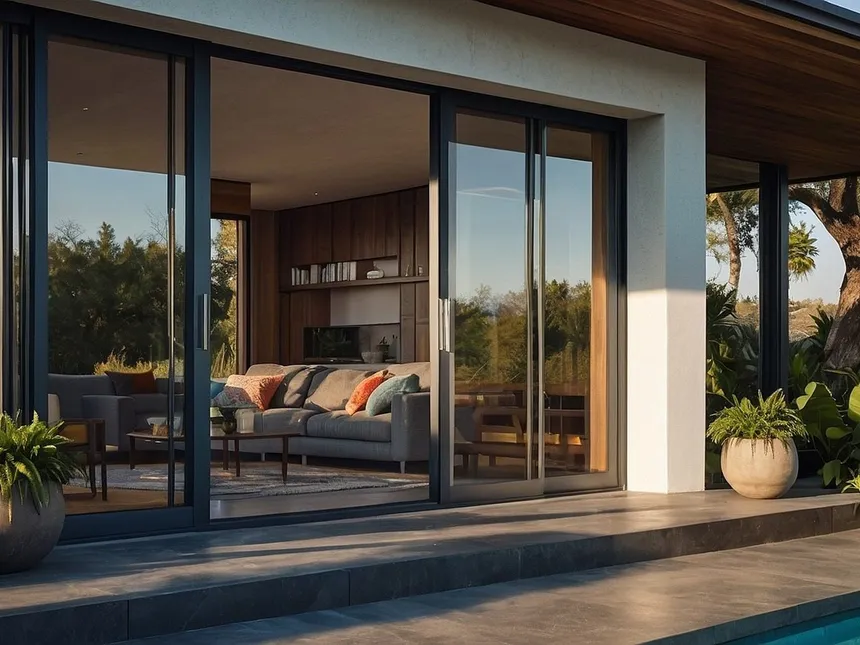 Sí, las grandes puertas correderas lucen espectacularmente con laminado "Antracita" o "Negro ultramate", imitando aluminio caro pero conservando el calor del PVC.