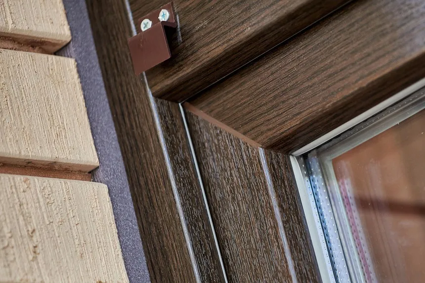 Это технология, при которой сам пластиковый профиль изначально изготавливается не белым, а цветным (например, коричневым или карамельным). Это делается для того, чтобы при открывании створки не было видно белого торца, что создает более гармоничный и завершенный вид, особенно при ламинации под дерево.