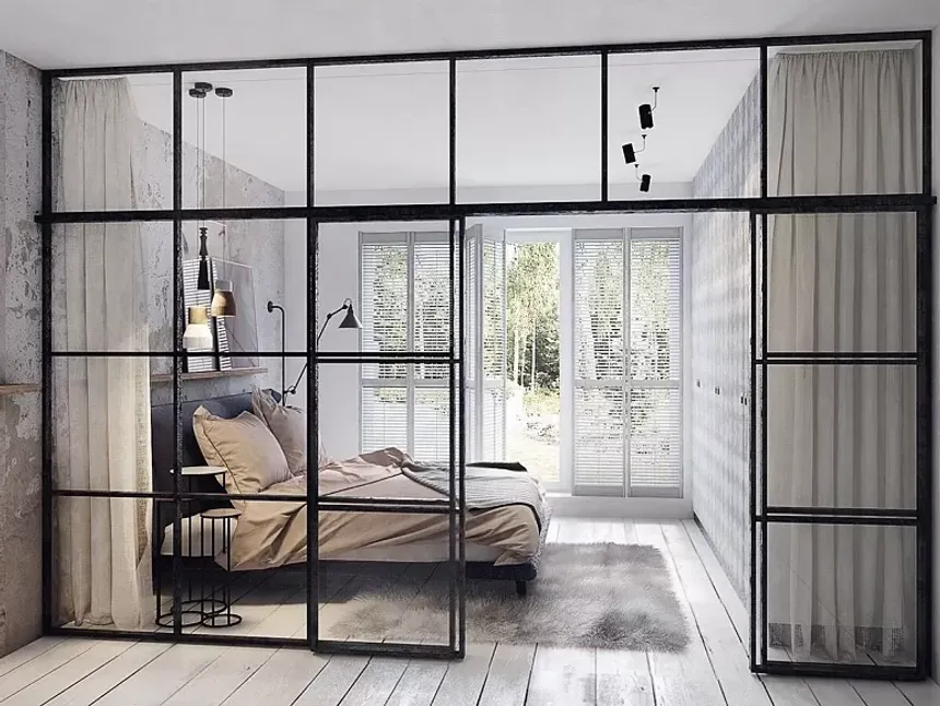 Системы подходят для зонирования кухни‑гостиной, кабинета или гардеробной, сохраняя свет и визуальную лёгкость интерьера.