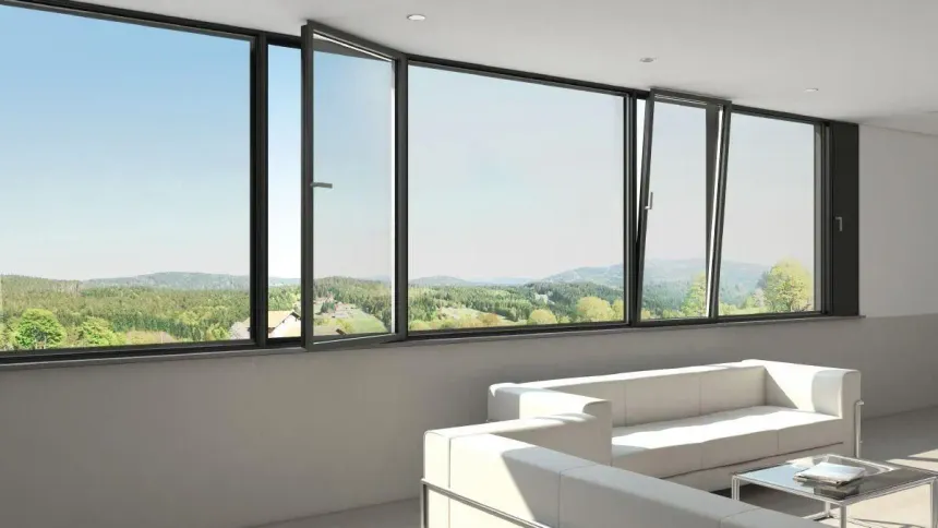 Внешне створка практически невидима (эффект скрытой створки), а изнутри профиль образует единую плоскость с рамой (flush look). Это идеальное решение для ленточного остекления и вставки в стоечно-ригельные фасады, где важна визуальная легкость конструкции.