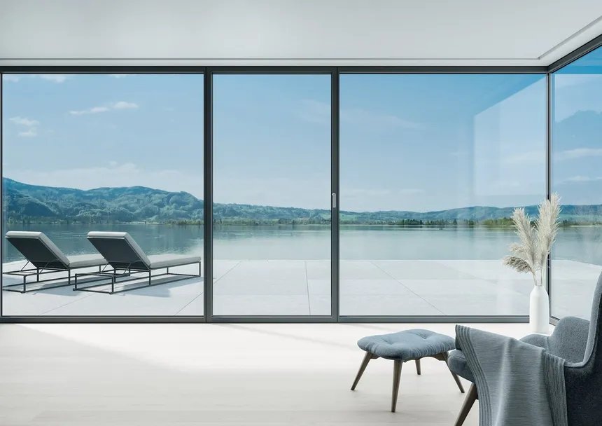 Панорамный дизайн. Архитектурная система с минимальной видимой шириной профилей от 55 мм для максимального света.